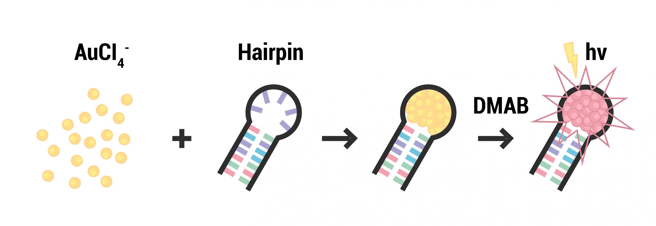 Figure 1: Schematic formation of fluorescent DNA-hosted Au-nanoclusters and the hairpin DNAs,